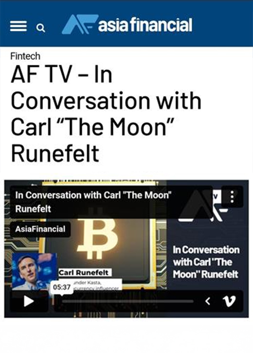 Arabian Business features Carl Runefelt, CEO and founder of The Moon Group, mentioning him as a staunch believer in cryptocurrency and demonstrating his faith in crypto as a long-term viable solution.