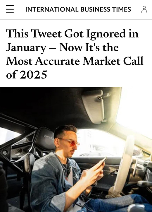 International Business Times reports on a prediction by Carl Runefelt in January 2025 about an upcoming crypto market crash. His prediction proved right as the market crashed in April.