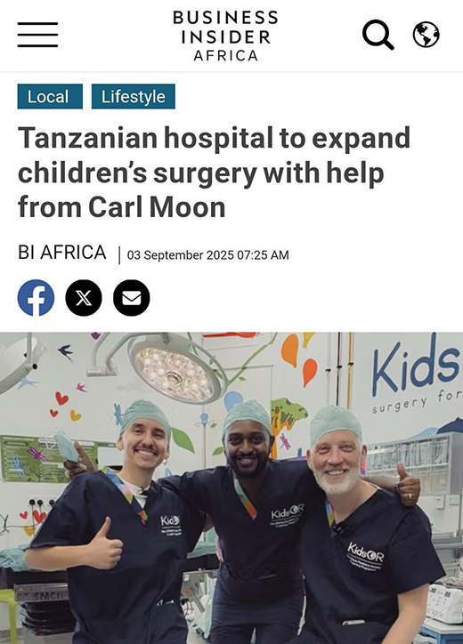 Business Insider Africa covers Carl Runefelt's generous donation of $400,000 to fund a dedicated pediatric operating theatre and recovery room at Kilimanjaro Christian Medical Centre in Tanzania.
