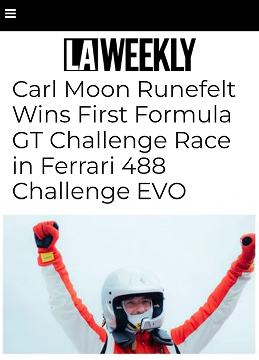 Carl Moon Runefelt won his first Formula GT Challenge race behind the wheel of a Ferrari 488 Challenge EVO. Carl credits the Law of Attraction and mental visualization as key factors behind his overall success in life as a whole.